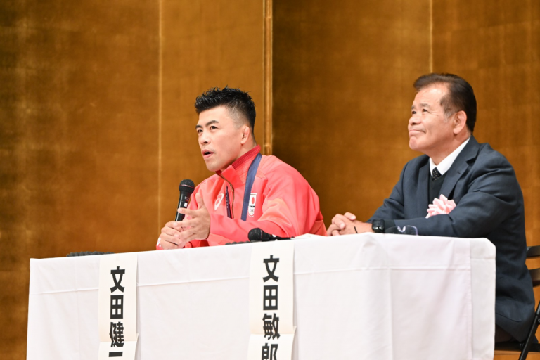 また、顕彰式典開催前に、地元出身のレスリング、パリ五輪金メダリスト文田健一郎選手による講演「僕の生き様」を拝聴、その後、文田選手とお父様文田敏郎氏への質問コーナを実施、日頃、更生保護事業に御尽力・御協力をいただいている功労者及び民間協力功労者の士気高揚と更生保護関係団体相互の連携充実を図りました。
