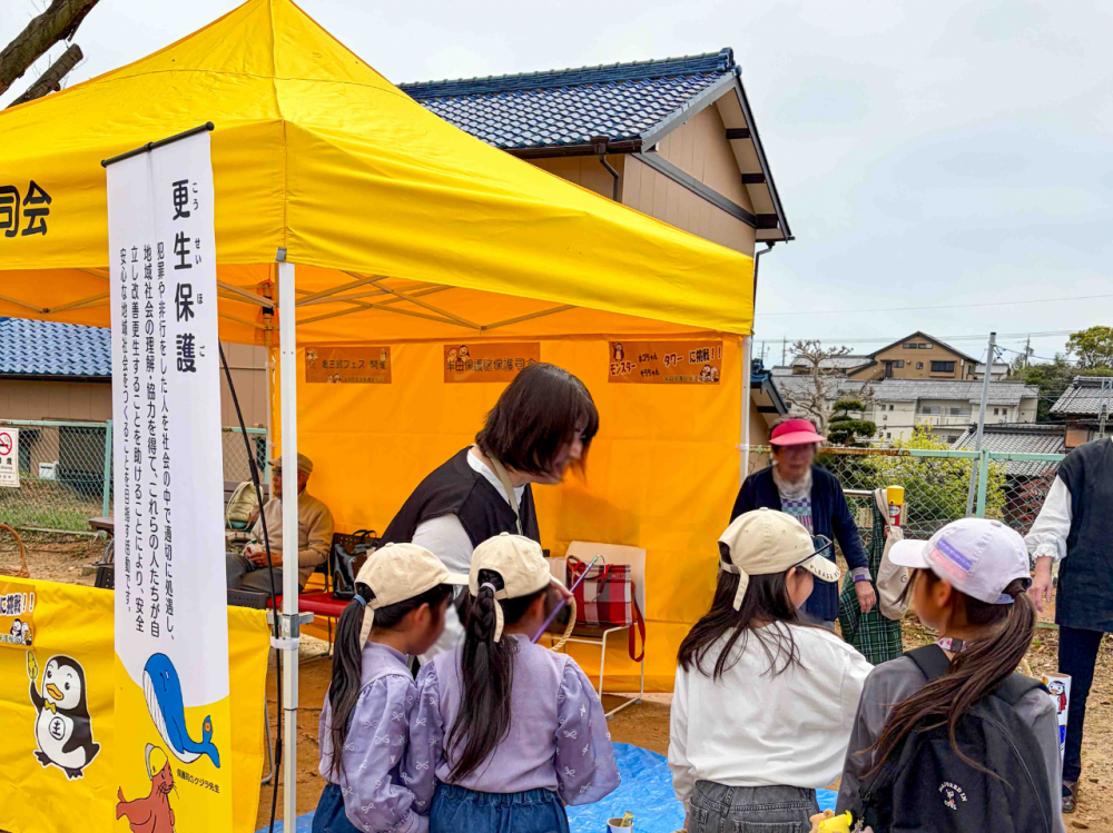 保護司会もブースを出し、「モンスター ホゴちゃん・サラちゃん タワー」で楽しんでいただきました。