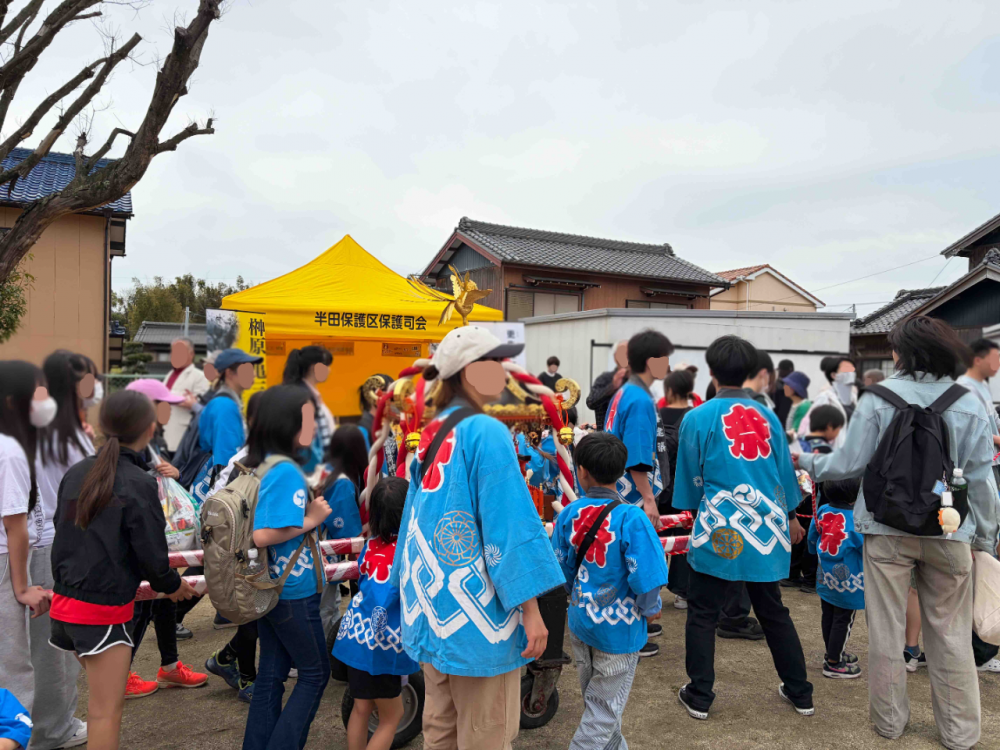 町内を御神輿が練り歩き、榊原弱者救済所跡公園に入場。